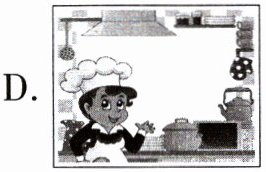 (B)1. farmer (D)2. cook (A)3. worker (C)4. doctor