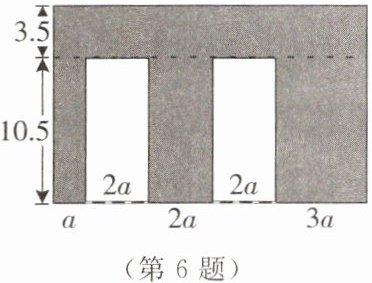 (1)解:由图可知,大长方形的长为$a + 2a + 3a=6a$,宽为$3.5 + 10.5 = 14$,面积为$6a×14 = 84a$。