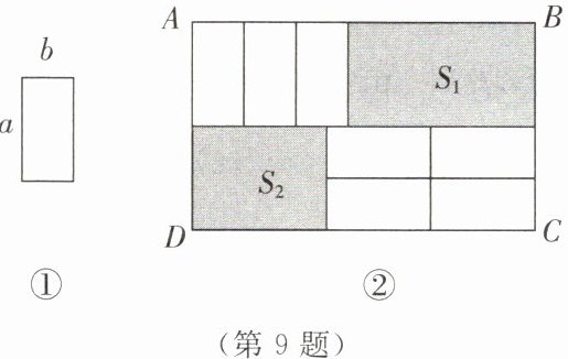 (2)有7张如图①所示的小长方形,长为$a$,宽为$b$,按照图②所示方式不重叠地放在大长方形$ABCD$内.大长方形中有两个部分(图中阴影部分)未被覆盖,设右上角的面积为$S_{1}$,左下角的面积为$S_{2}$,当$AB$的长变化时,$S_{1}-S_{2}$的值始终保持不变.求$a与b$的等量关系.