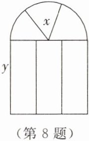8. 某窗户的形状如图所示(图中长度单位:cm),其中上部是半径为$x$ cm的半圆形,下部是长为$y$ cm的长方形。