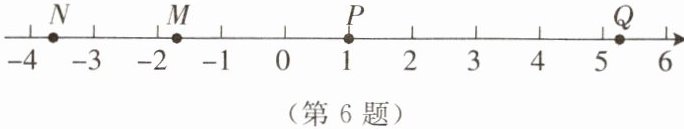 6. 已知点 $M,N,P,Q$ 在数轴上的位置如图所示,则各点对应的数的绝对值最大的点是 ______ 点.