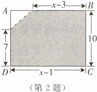 2. 如图所示,将一张长方形纸片ABCD(AB= CD,AD= BC)沿虚线剪去一个三角形后,图中阴影部分的面积为110个平方单位,根据图中标注的长度求x的值.