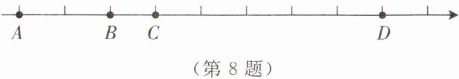 8. 如图所示,数轴上每一小段的单位长度为1,点$A$,$B$,$C$,$D在数轴上对应的数分别为a$,$b$,$c$,$d$.