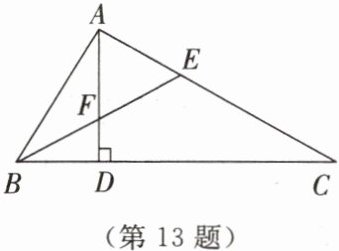 13. 已知在△ABC中,∠BAC= 90°,AD⊥BC于点D,∠ABC的平分线BE交AD于点F.求证∠AEF= ∠AFE.