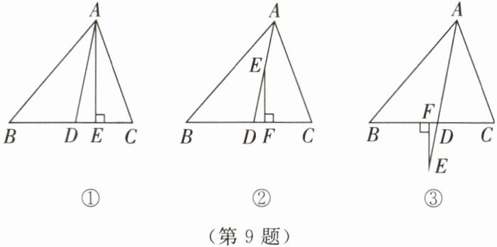 9. 在$\triangle ABC$中,$AD平分\angle BAC$,$\angle B<\angle C$.
