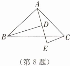 8. 如图所示,A,D,E三点在同一条直线上,且$\triangle BAD \cong \triangle ACE$.