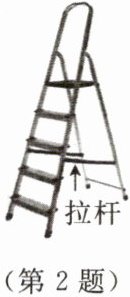 2. 如图所示,为使人字梯更稳固,可在梯子中间安装一个“拉杆”,这样做利用的数学原理是