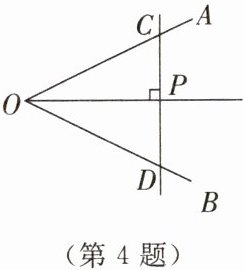 4. 如图所示,若 OP 平分∠AOB,过点 P 作 OP 的垂线分别交 OA,OB 于点 C,D,则 PC 与 PD 相等吗?为什么?