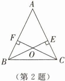 2. 如图所示,$BE\perp AC$,$CF\perp AB$,垂足分别是$E$,$F$,$BE与CF相交于点O$. 若$BE= CF$,则图中全等三角形有