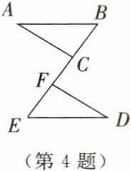 4. 如图所示,已知点$B$,$C$,$F$,$E$在一条直线上,$\angle ACB= \angle DFE$,$\angle A= \angle D$,要使$\triangle ABC\cong\triangle DEF$,还需要添加一个条件,这个条件可以是