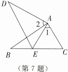 7. 如图所示,已知点B,C,E在一条直线上,∠1= ∠2,AB= AD. 请添加一个条件,使△ABC≌△ADE,并加以证明.