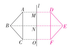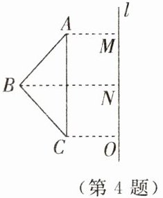4. 如图所示,已知直线l和△ABC,作△ABC关于直线l的对称图形,将下列作图步骤补充完整。