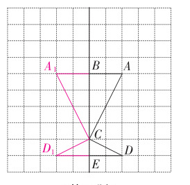 5. 在网格中画出所给图形关于直线BE对称的图形,点A,D的对应点分别为$A_1,D_1。$