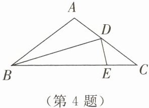 4. 如图所示,已知在 $\triangle ABC$ 中,$AB= AC$,$BD$ 是 $\angle ABC$ 的平分线,且 $BD= BE$,$\angle A= 100°$. 求 $\angle DEC$ 的大小.