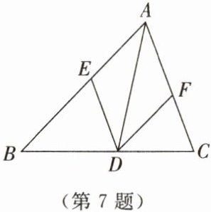 7. 如图所示,D 是△ABC 中 BC 边上的一点,DE//AC 交 AB 于点 E,DF//AB 交 AC 于点 F,且∠ADE= ∠ADF.AD 是△ABC 的角平分线吗?试说明理由.