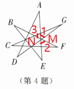 4. 如图所示,在七星形中,$\angle A+\angle B+\angle C+\angle D+\angle E+\angle F+\angle G= $