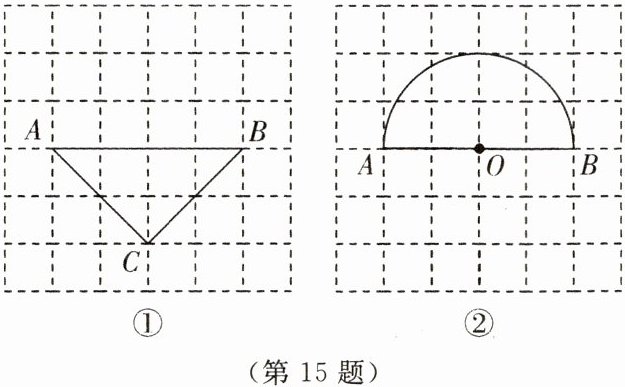 (2)在图②中以$AB为直径的半圆上找一点P$,画出$\angle ABP$,使得$\angle ABP = 22.5^\circ$。