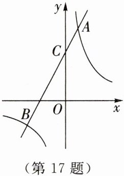 17. 如图所示,在平面直角坐标系$xOy$中,直线$y = kx + b(k \neq 0)与双曲线y = \frac{6}{x}相交于点A(m,6)和点B(-3,n)$,直线$AB与y轴交于点C$。
