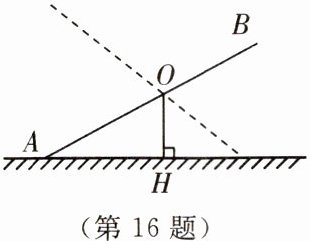 16. 如图所示,不等臂跷跷板$AB的一端A$碰到地面时,另一端$B$到地面的高度为60 cm;当$AB的一端B$碰到地面时,另一端$A$到地面的高度为90 cm。求跷跷板$AB的支撑点O到地面的距离OH$。