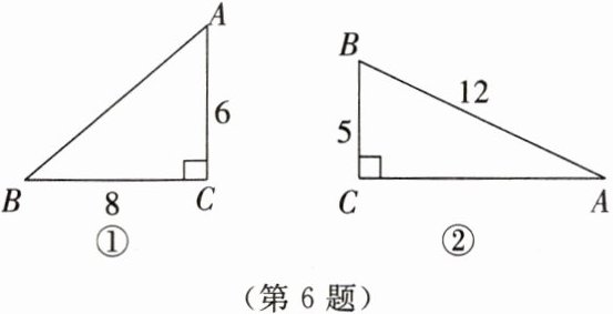 6. 如图所示,在Rt△ABC中,∠C= 90°,求图①和图②中sin A和sin B的值.