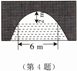 4. 如图所示的是抛物线形拱桥,当拱顶离水面2 m时,水面宽6 m,当水面下降多少米时,水面宽8 m?