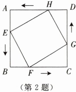 2. 如图所示,在边长为 6 cm 的正方形 $ ABCD $ 中,点 $ E,F,G,H $ 分别从点 $ A,B,C,D $ 同时出发,均以 1 cm/s 的速度向点 $ B,C,D,A $ 匀速运动.当点 $ E $ 到达点 $ B $ 时,四个点同时停止运动.在运动过程中,当运动时间为