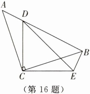 16. 如图所示,在等腰直角三角形ABC中,$AC= BC$,$\angle ACB= 90^{\circ}$,D为斜边AB上一点(不与A,B重合),$AD<BD$,连接CD,将线段CD绕点C沿顺时针方向旋转$90^{\circ}$至CE,连接BE,DE.