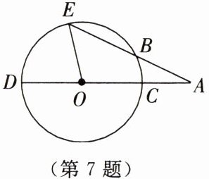 7. 如图所示,线段$AD过圆心O交\odot O于D,C$两点. 若$\angle EOD= 78^\circ$,$AE交\odot O于点B$,且$AB= OC$,求$\angle A$的大小.