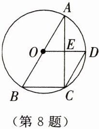 8. 如图所示,$AB为\odot O$的直径,点$C,D在\odot O$上,$AC与OD交于点E$,$AE= EC$,$OE= ED$,连接$BC,CD$. 求证: