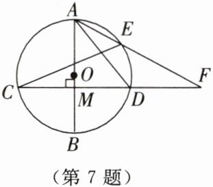 7. 如图所示,在$\odot O$中,直径$AB\perp弦CD于点M$,$E是\overset{\frown}{AD}$的中点,连接$AD,CE$,连接$AE并延长交CD的延长线于点F$.