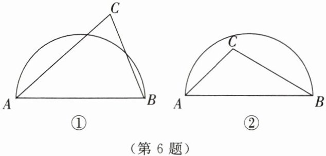 6. 如图所示,$AB$是半圆的直径,图①中,点$C$在半圆外,图②中,点$C$在半圆内. 请仅用无刻度的直尺按要求作图.(不必写出作图过程,但必须保留作图痕迹)