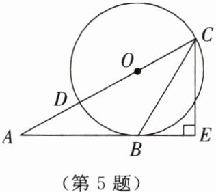 5. 如图所示,已知△ABC的边AB是⊙O的切线,切点为B. AC经过圆心O并与⊙O相交于点D,C,过点C作直线CE⊥AB,交AB的延长线于点E. 求证:CB平分∠ACE.