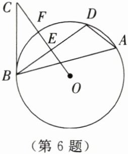 6. 如图所示,△ABD是⊙O的内接三角形,E是弦BD的中点,C是⊙O外一点且∠DBC= ∠A,连接OE并延长与⊙O相交于点F,与BC相交于点C.