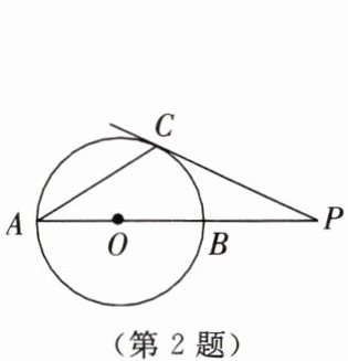 2. 如图所示,已知AB是⊙O的直径,点C在⊙O上,过点C的切线与AB的延长线交于点P,连接AC. 若∠A= 30°,PC= 3,则BP的长为______.