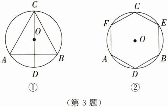 3. 如图①所示,等边三角形ABC内接于⊙O,连接CO并延长交⊙O于点D.