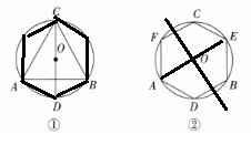 ②在图②中作出⊙O的内接正六边形ADBECF的一条不经过顶点的对称轴.