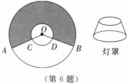 6.有一批台灯罩,如图所示,阴影部分为灯罩的侧面展开图.已知半径OA,OC分别为36 cm,12 cm,∠AOB= 135°.