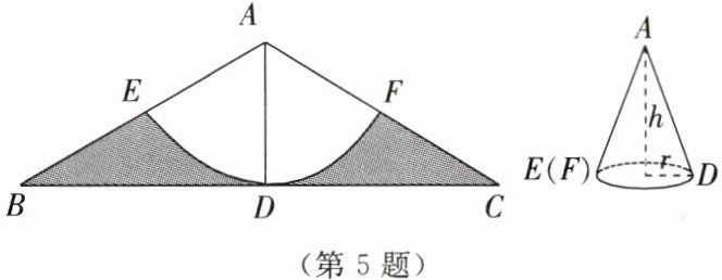 5.如图所示,在等腰三角形ABC中,∠BAC= 120°,AD是∠BAC的平分线,且AD= 6.以点A为圆心,AD长为半径画$\widehat{EF}$,交AB于点E,交AC于点F.
