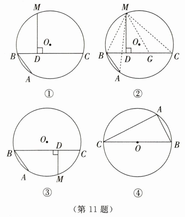 如图①所示,AB,BC是⊙O的两条弦,AB= 4,BC= 6.若M是$\overset{\frown}{ABC}$的中点,MD⊥BC于点D,则BD=
