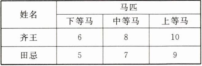 解:齐王马匹出场顺序固定为10(上等)、8(中等)、6(下等)。