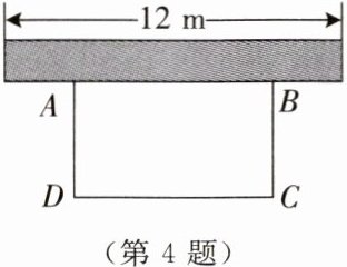 4. 如图所示,某小组准备用材料围建一个面积为 $ 60 \, m^2 $ 的矩形 $ ABCD $,其中的一边 $ AB $ 靠墙,墙长为 $ 12 \, m $. 设 $ AD $ 的长为 $ x \, m $,$ DC $ 的长为 $ y \, m $.