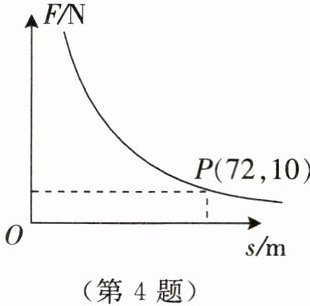 4. 在对物体做功一定的情况下,力 $ F(N) $ 与此物体在力的方向上移动的距离 $ s(m) $ 成反比例关系,其图象如图所示. 当力为 $ 20 \, N $ 时,此物体在力的方向上移动的距离是______m.