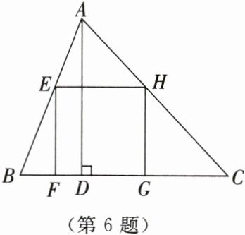 6. 如图所示,$\triangle ABC$为锐角三角形,$AD是BC$边上的高,正方形$EFGH的一边FG在BC$上,顶点$E,H分别在AB,AC$上。已知$BC= 4\ cm$,$AD= 3\ cm$。