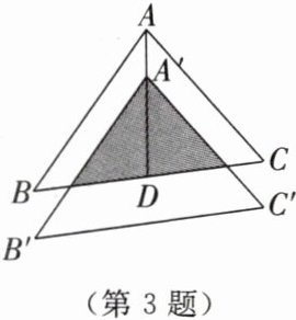 3. 如图所示,将$\triangle ABC沿BC边上的中线AD平移到\triangle A'B'C'$的位置。已知$\triangle ABC的面积为9$,阴影部分三角形的面积为$4$。若$AA'= 1$,则$A'D= $