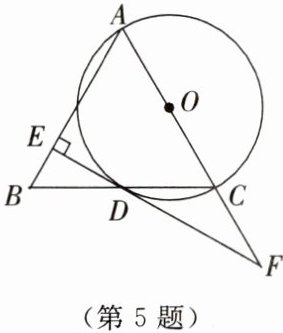 5. 如图所示,在$\triangle ABC$中,$AB= AC$,以$AC为直径的\odot O与BC交于点D$,$DE\perp AB$,垂足为$E$。$ED的延长线与AC的延长线交于点F$。