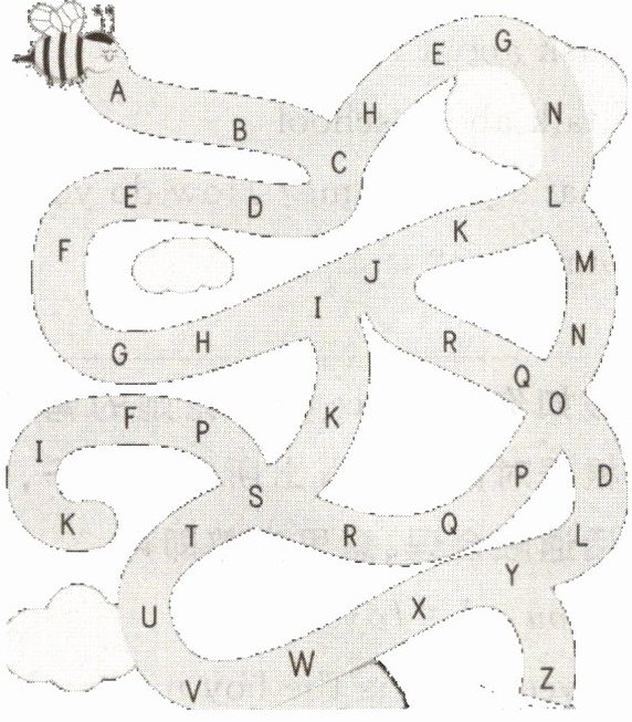 一、按英文字母顺序连线,帮助小蜜蜂走出迷宫。