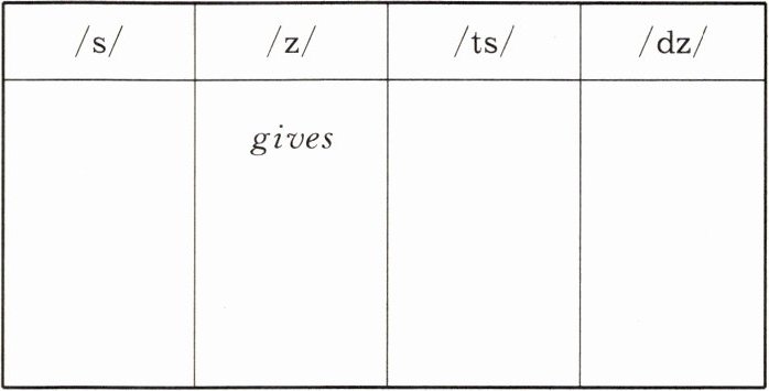 | /s/ | /z/ | /ts/ | /dz/ |