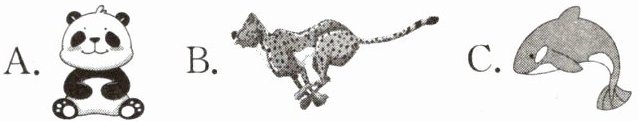 2. 此题无法给出具体答案,需根据听力内容选择Susan最喜欢的动物。假设听力内容表明Susan最喜欢的是猎豹,则答案为B(猎豹图片)。
