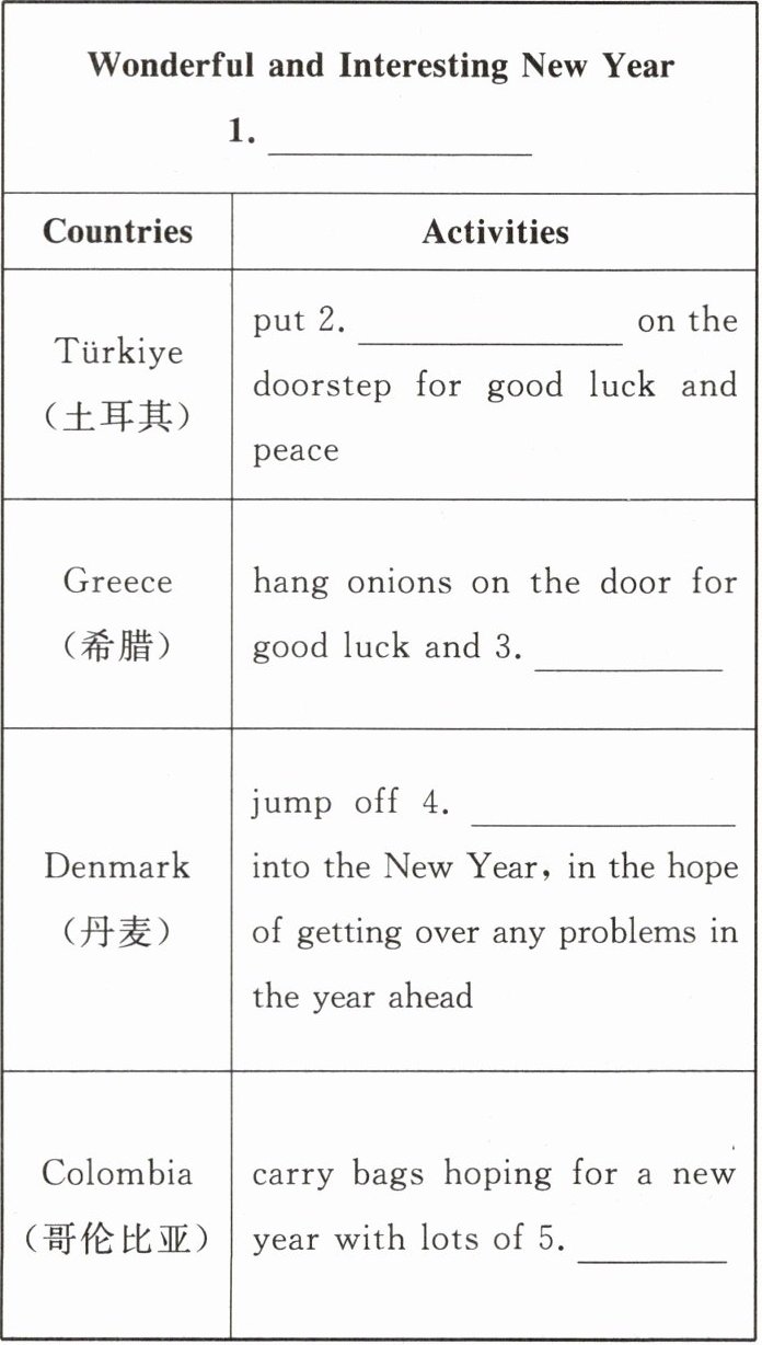 . Many fireworks can't be recycled(回收利用),so they end up in landfills(填埋场).任务二:将每个段落与其大意匹配。