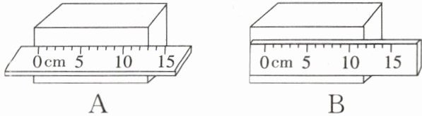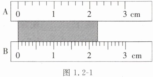 2. 如图 1.2 - 1 所示,用 A、B 两把刻度尺测同一木块的长度,就使用方法而言,